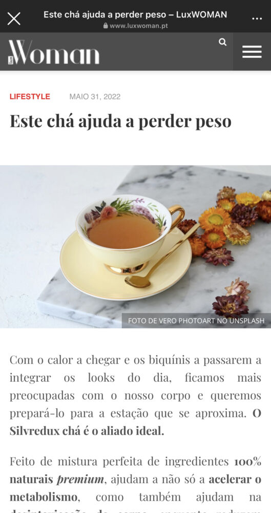 Silvredux chá é uma mistura perfeita de ingredientes 100% naturais premium que não só aceleram o metabolismo mas também ajudam na desintoxicação do corpo, enquanto reduzem naturalmente o apetite e o desejo por doces. Composição e formula devidamente selecionada tornando os resultados eficazes.
